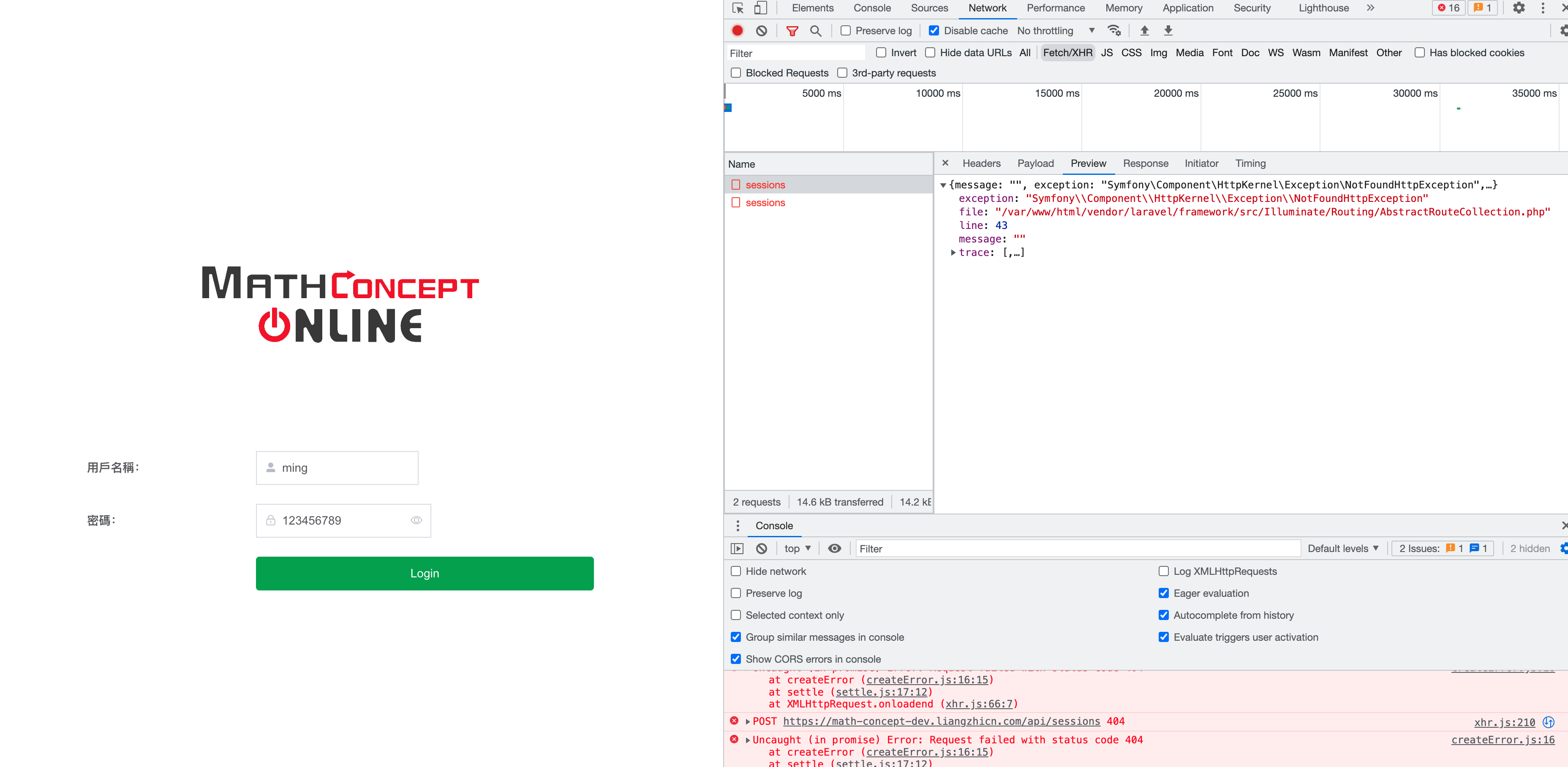 003+ 1、路由不正确,正确的为:https://math-concept-dev.liangzhicn.com/portal/api/v1/sessions[期望]