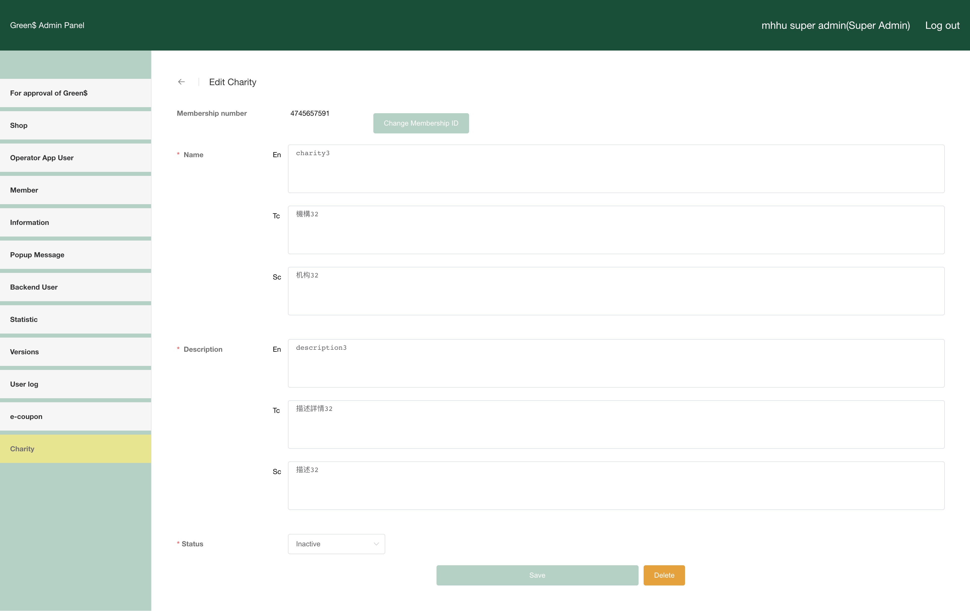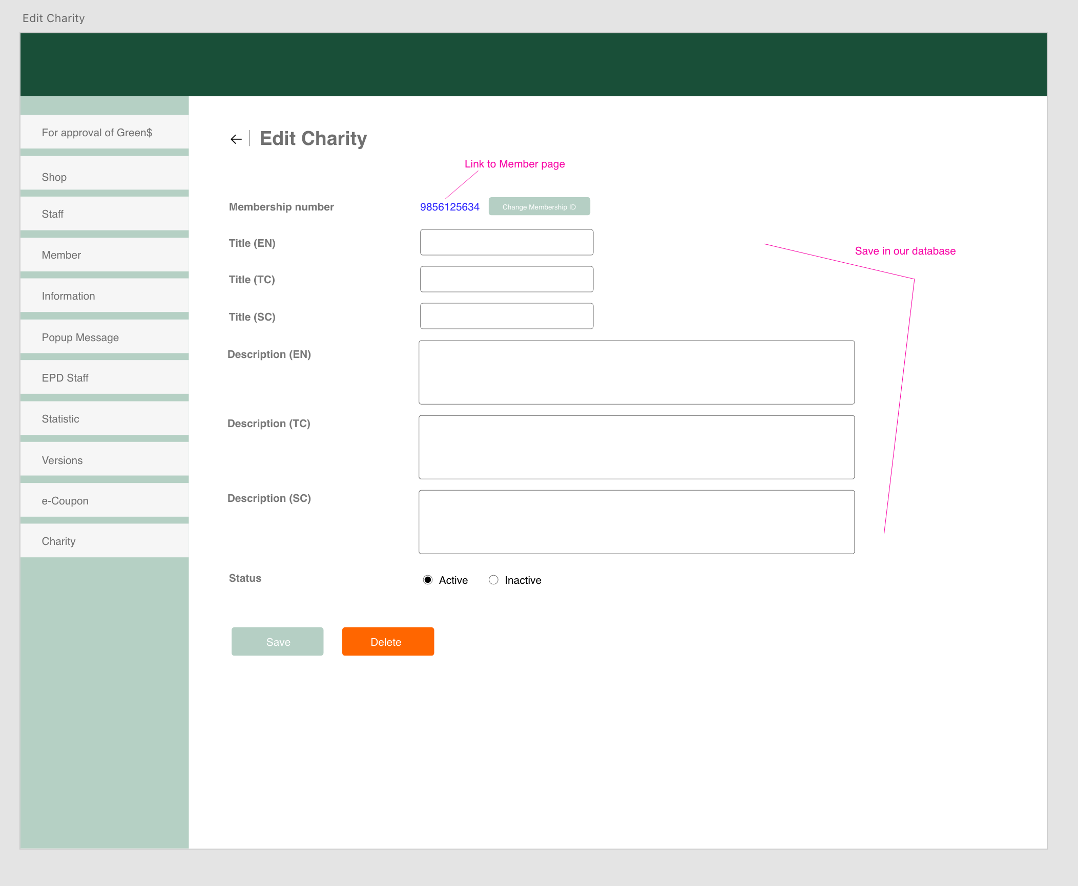 1、标题【Edit Charity】字体与效果图不符,与参考其它页面标题的样式