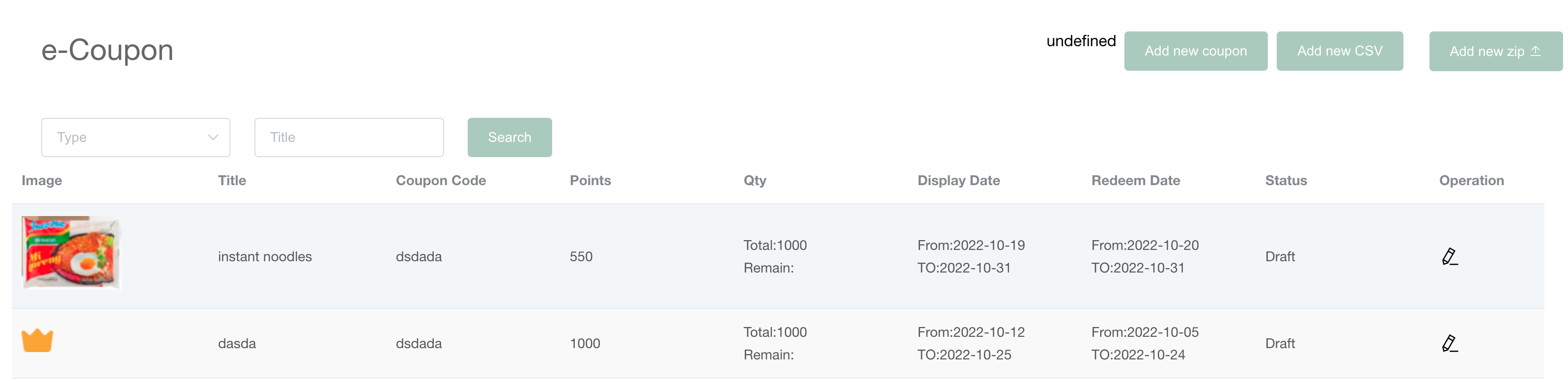 1、新增/编辑礼券时,CouponCode应不允许重复
