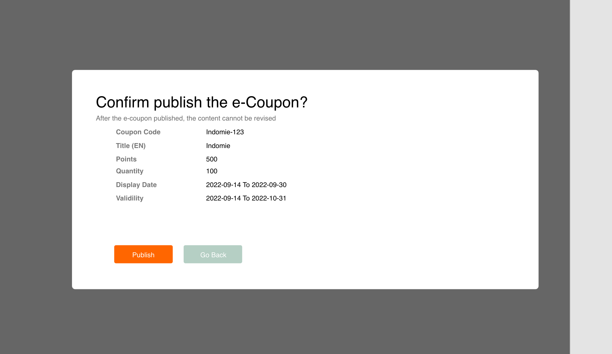 4、【Publish控件】和【Go Back控件】大小未一致,且应与Coupon Code等数据左对齐