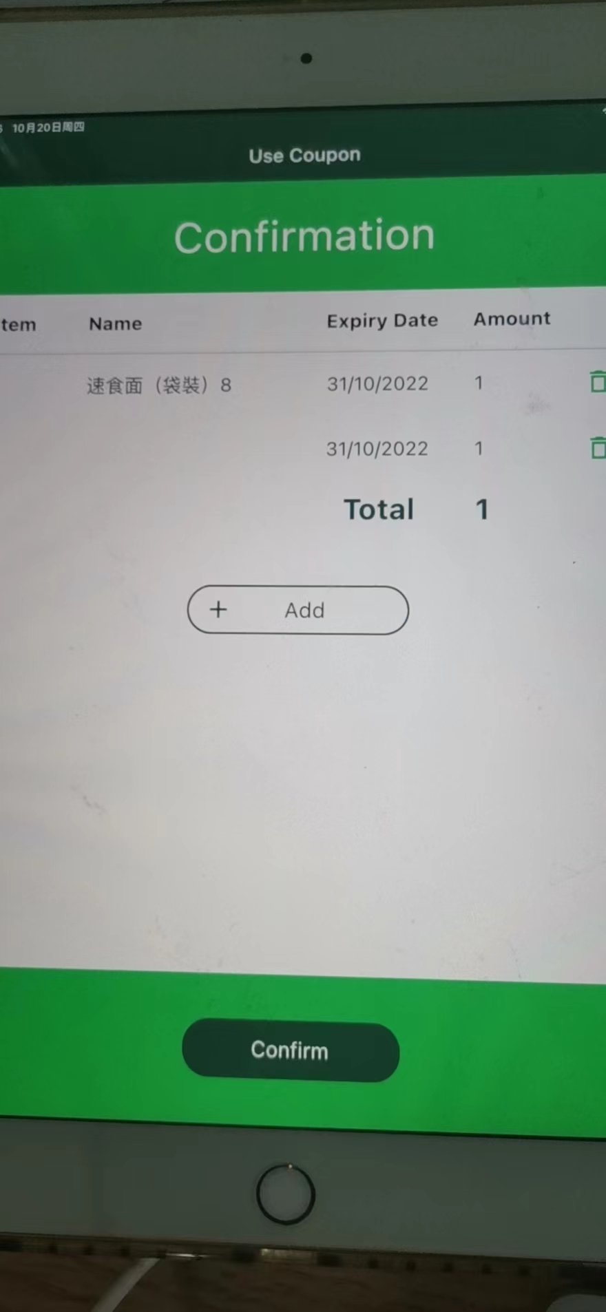 1、职员扫描第一种礼券后,点击Add,再次扫描第一种礼券