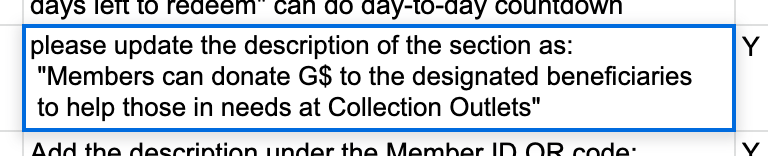2、【please update the description of the section as: "Members can donate G$ to the designated beneficiaries to help those in needs at Collection Outlets"】