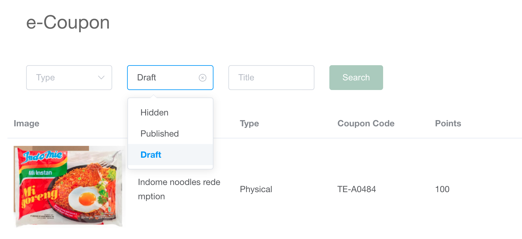 (1) please provide a button "Back to the main page of e-Coupon"., from the "coupon details" & "coupon List" (2) please add a criteria to filter content which are "Draft" and "Published"