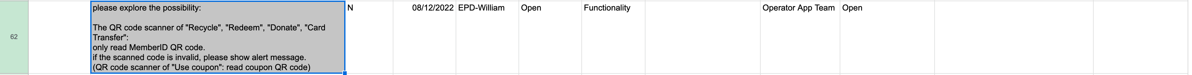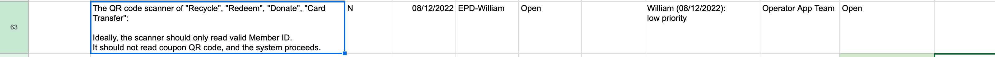 The QR code scanner of "Recycle", "Redeem", "Donate", "Card Transfer": Ideally, the scanner should only read valid Member ID. It should not read coupon QR code, and the system proceeds.