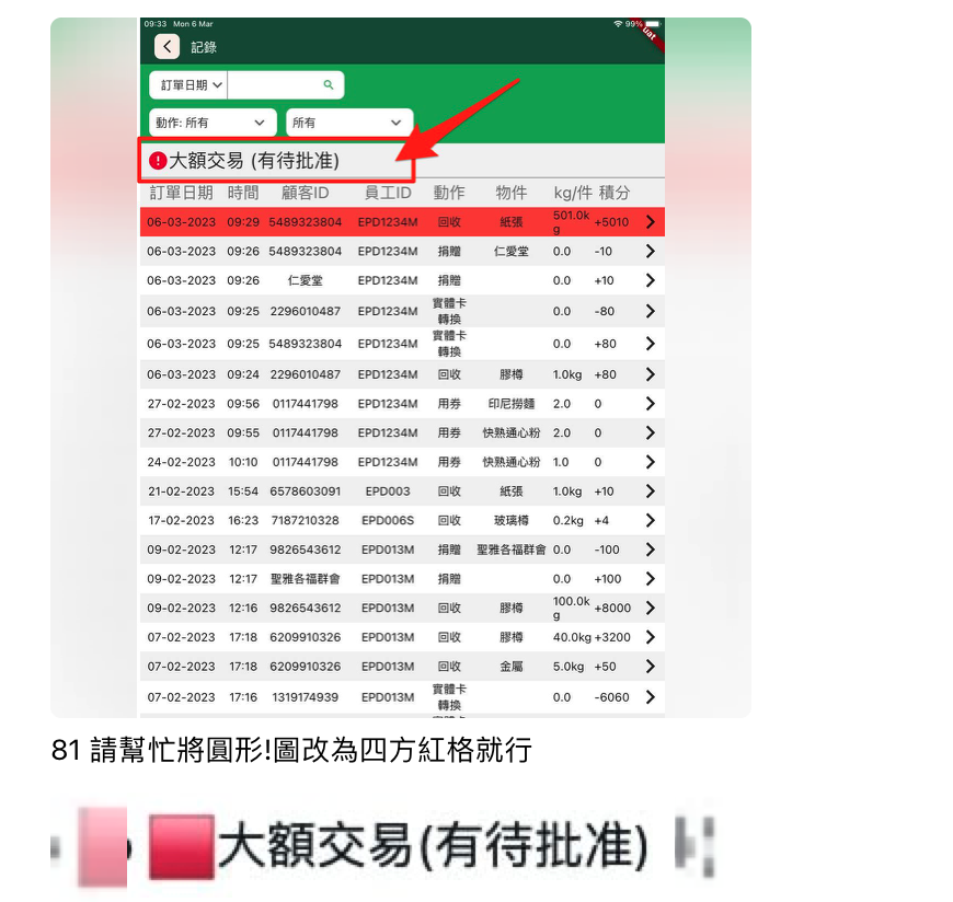 2、对于大额异常数据,可以使用红色行高亮来替代警告图标显示