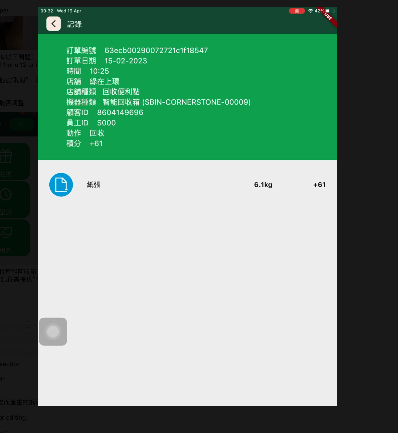 “記錄”:所有智能回收箱、禮物兌換機 (SBAL, SBIN, GRU開頭) 的記錄需提供“修改”按鈕