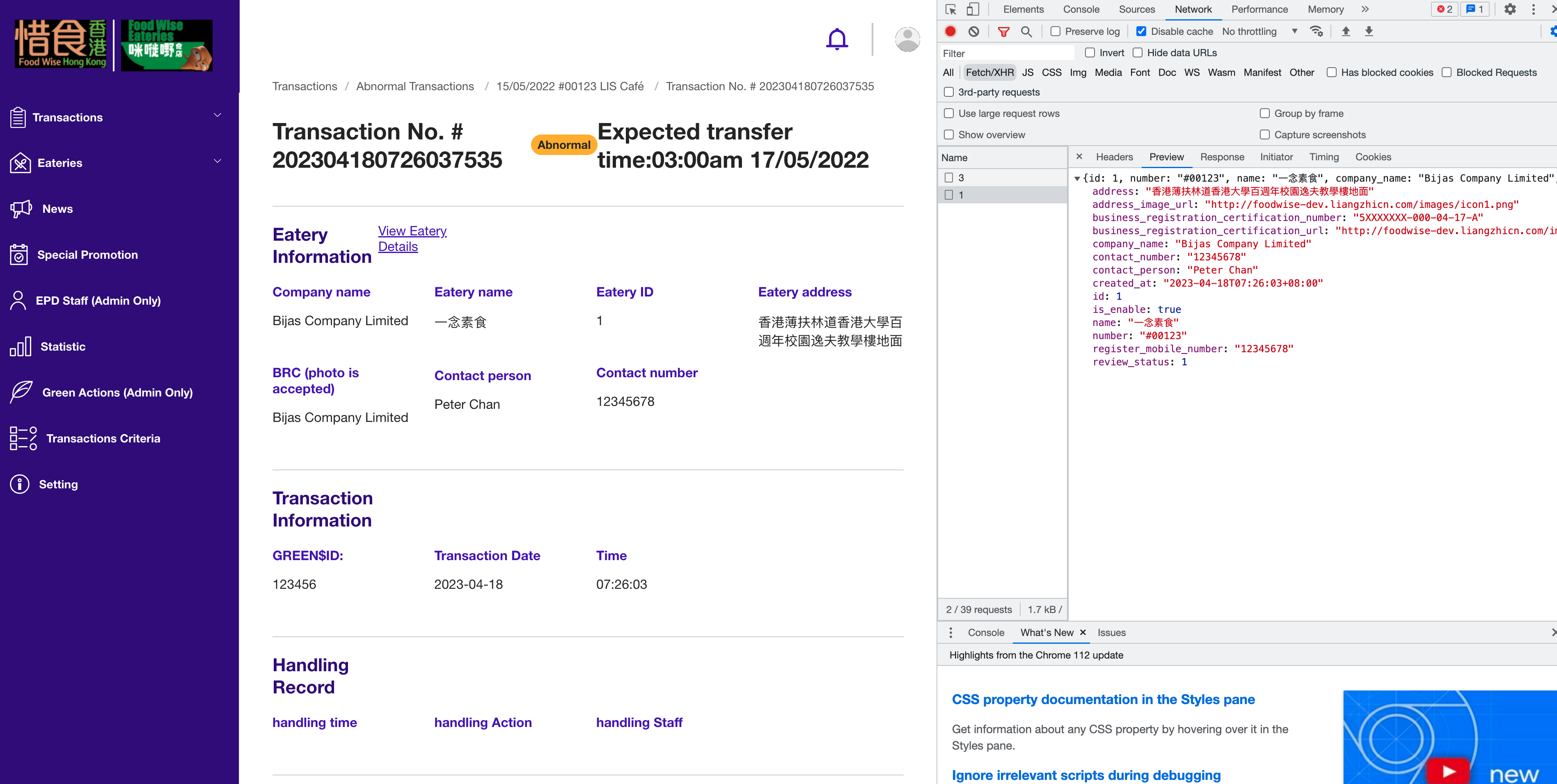 5、Transaction No. # 202304180726037535 后的Abnormal背景颜色应为红色