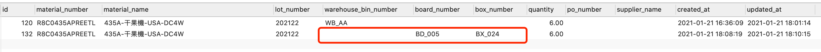 2)仓位为空,板、箱位置正确