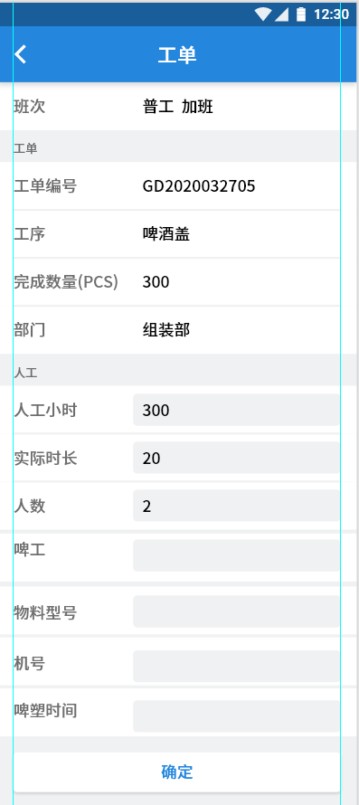 | 确定 | 确定报工 | 【确定】按钮 | 1.点击按钮,提示确定完成报工,点击确定完成报工,点击返回关闭弹窗 |