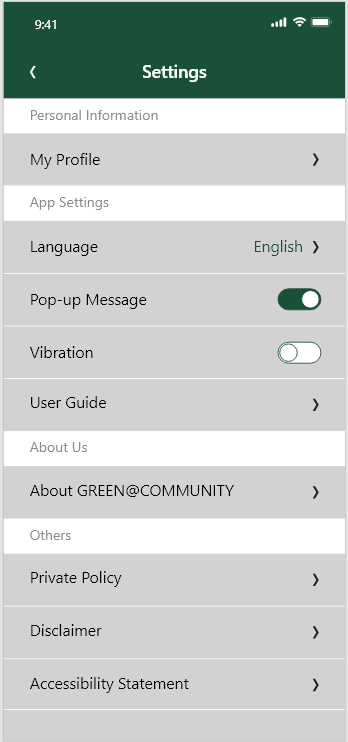 字段:About GREEN@COMMUNITY,图标:> |