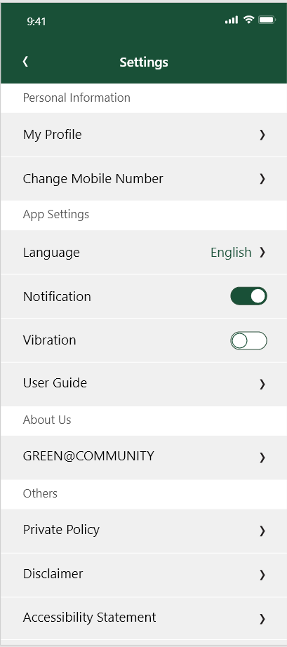字段:About GREEN@COMMUNITY,图标:> |