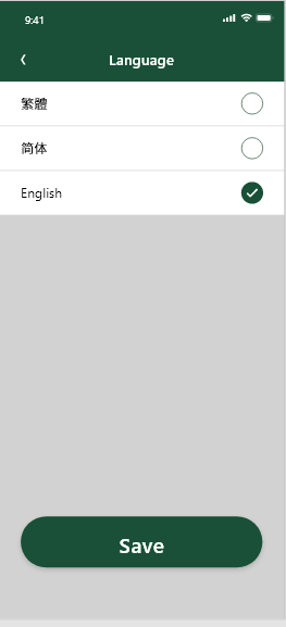 | 保存 | 提交语言显示 | 【Save】按钮 | 1.点击按钮,APP更换语言 |