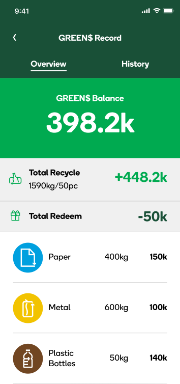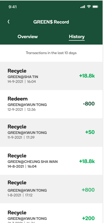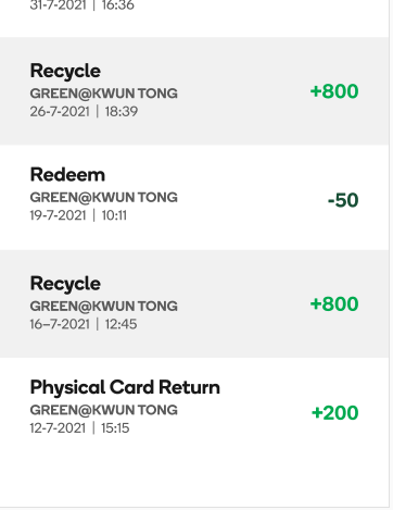 1.点击recycle记录,进入【回收记录详情】页面 2.点击redeem记录,进入【兑换记录详情】页面 待定 |