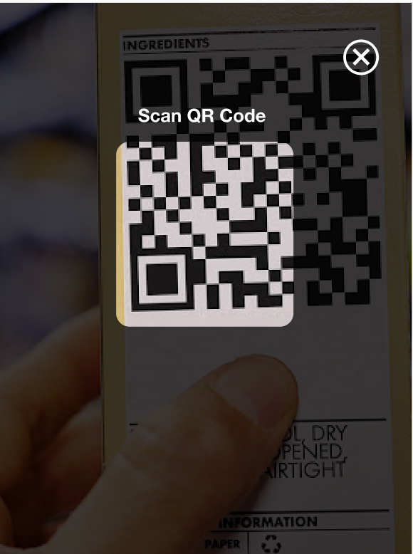 1.点击图标,调用手机扫描打开二维码扫描页面,点击X关闭页面 扫描成功,进入【编辑回收种类及重量】页面 |