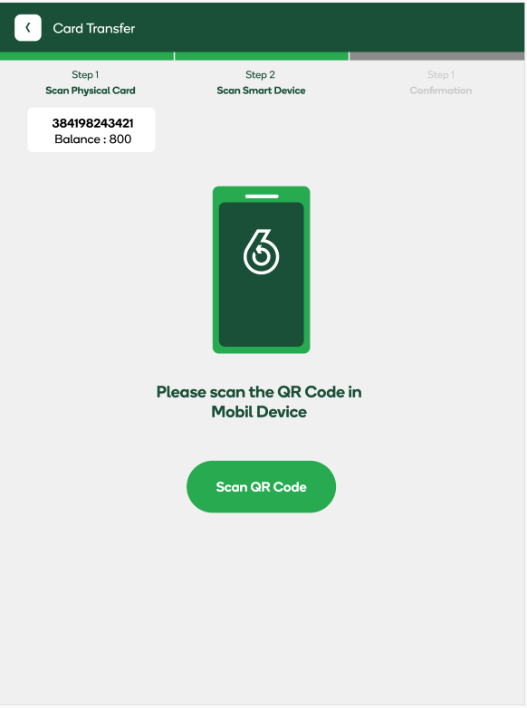 返回上一页 图标:< 1.点击图标,进入【第一步-扫描顾客卡的二维码】页面