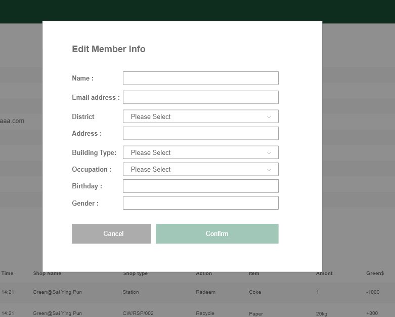 | 确认 | 提交个人资料 | 【Confirm】按钮 | 1.点击按钮,提交资料,关闭弹窗 |