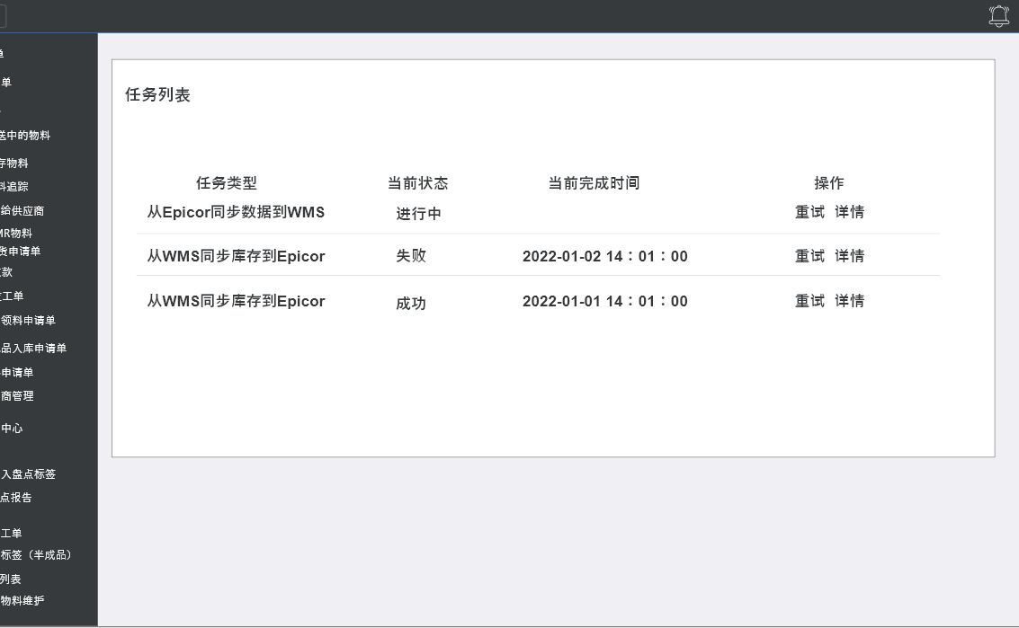 014-任务类型当前状态当前完成时间操作:重试 详情