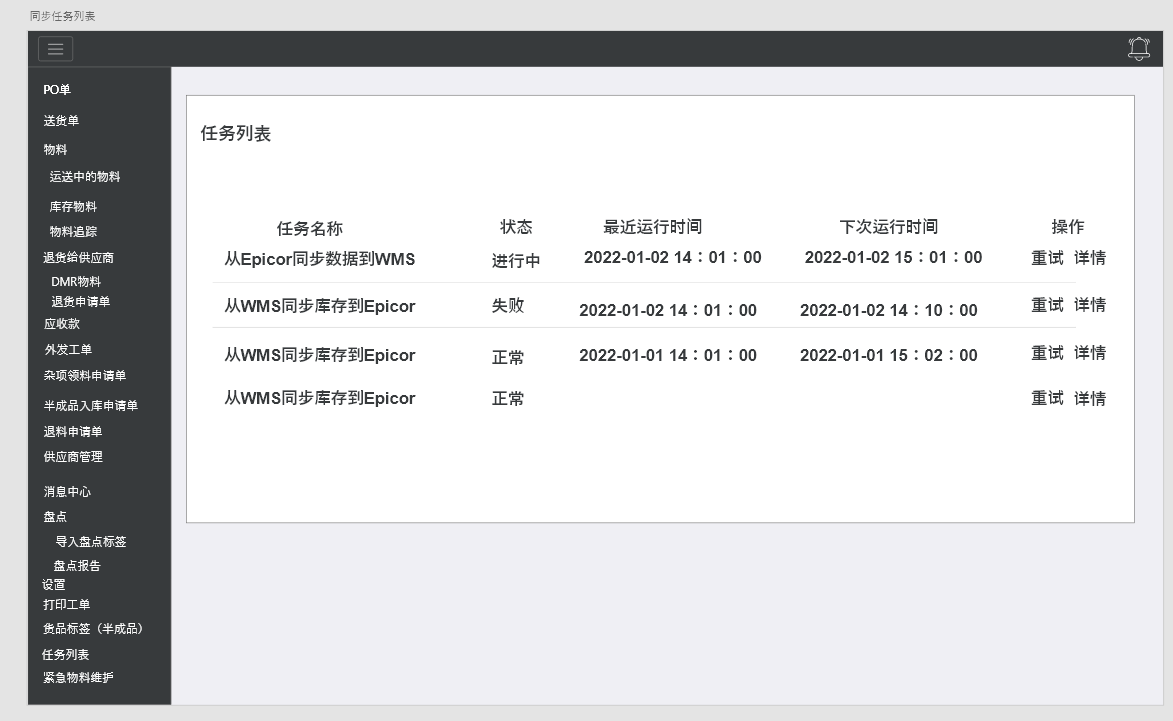 014+ 任务名称状态最近运行时间下次运行时间操作:重试 详情