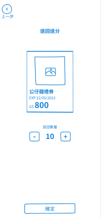 1.点击【+】按钮,增加礼券数量,超过现有礼券数量提示“您只有x张xxx礼券” 2.点击【-】按钮,减少礼券数量,数量为1时点击,提示“退回数量不可小于1” |