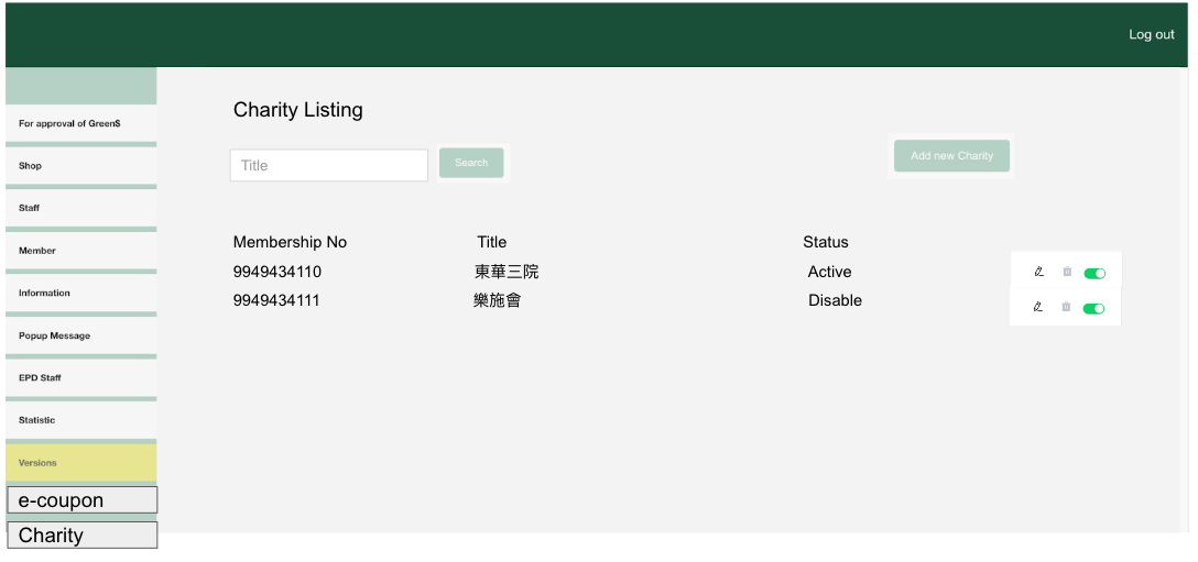 展示 | 列表字段: Membership No,标题,状态 开关图标: |
