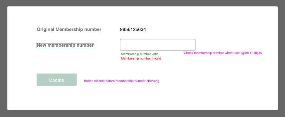 112+ <p>2.输入的会员编号有效输入框下方提示:Membership number valid</p>