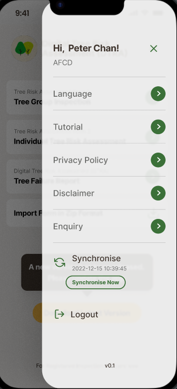 | 同步時間 | 展示同步時間 | 字段+按钮 显示上次同步时间 "Synchronise Now"按鈕, APP從API查看現時的 code table 是否最新版本, 如果是會顯示"Synchronise Now"按鈕, 按鍵下載最新的 code table |