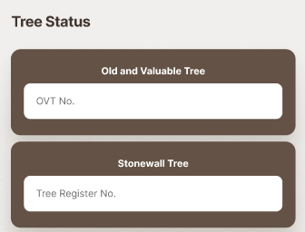 選擇框 a.古樹名木 b.石牆樹 c.受褐根病感染 d.大樹 (胸徑>=500毫米或高度>=9米) e.其他樹木 d.擠迫地點的樹木 |