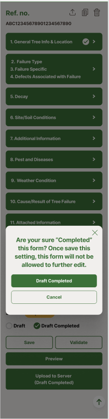 当更改Draft / Draft Completed後 "Upload to Server"按鈕會顯示相應文字(如图)