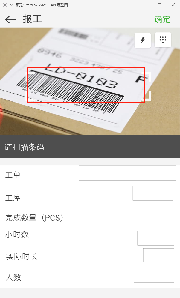 3.1.摄像头对准生产工单进行识别,识别成功后扫描框提示:“工单号”,页面显示工单的详细信息;