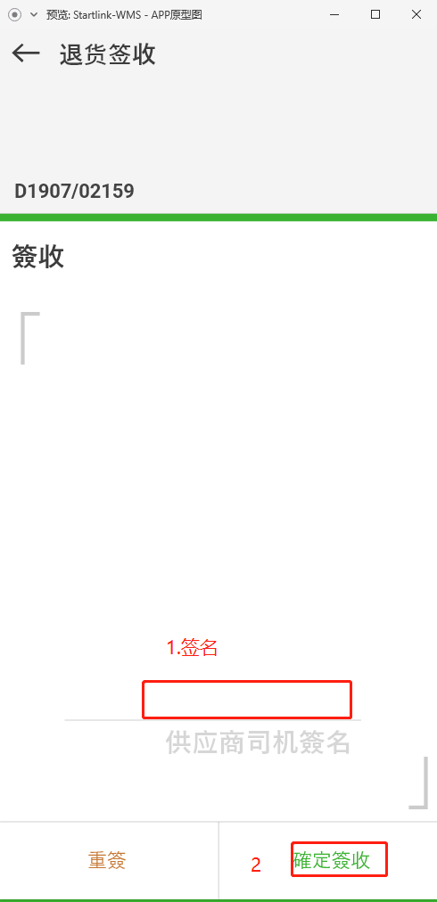 014+ 5.在页面手写签名,点击【确认签收】按钮系统保存退货数据;