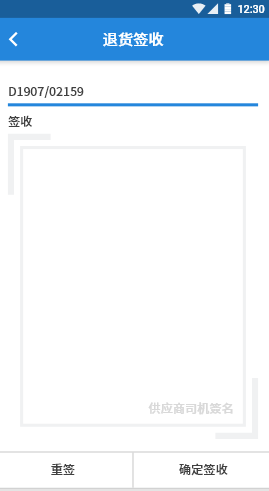 5.在页面手写签名,点击【确认签收】按钮系统保存退货数据;