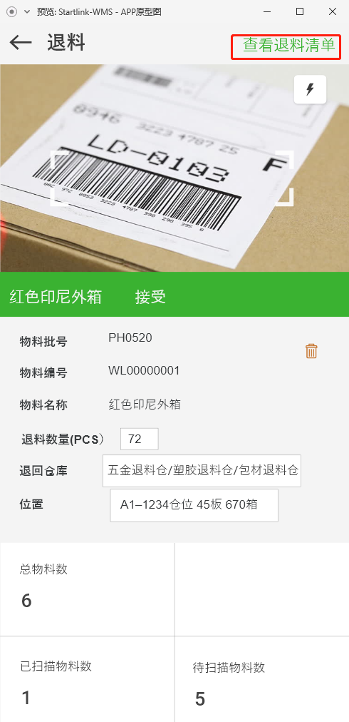 1.点击【查看退料清单】按钮进入【退料清单】页面;
