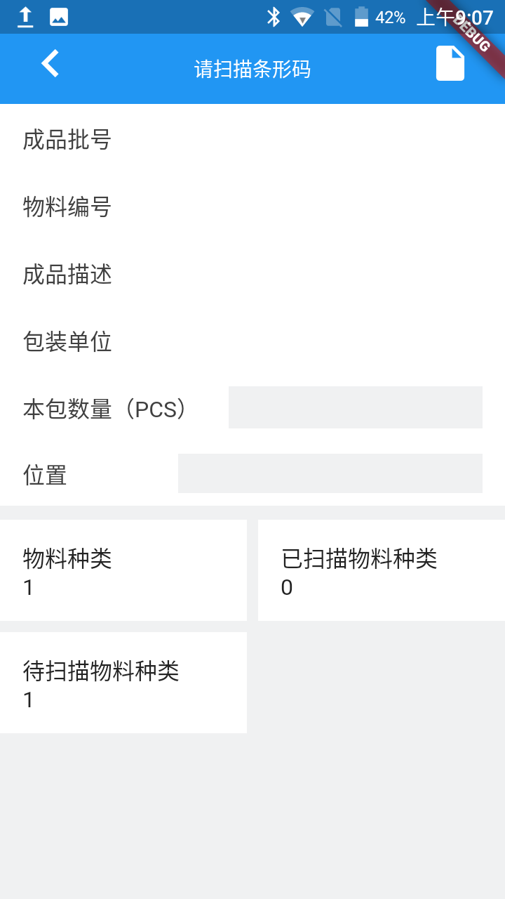 1.扫描半成品入库申请单显示物料种类数量,待扫描包装数