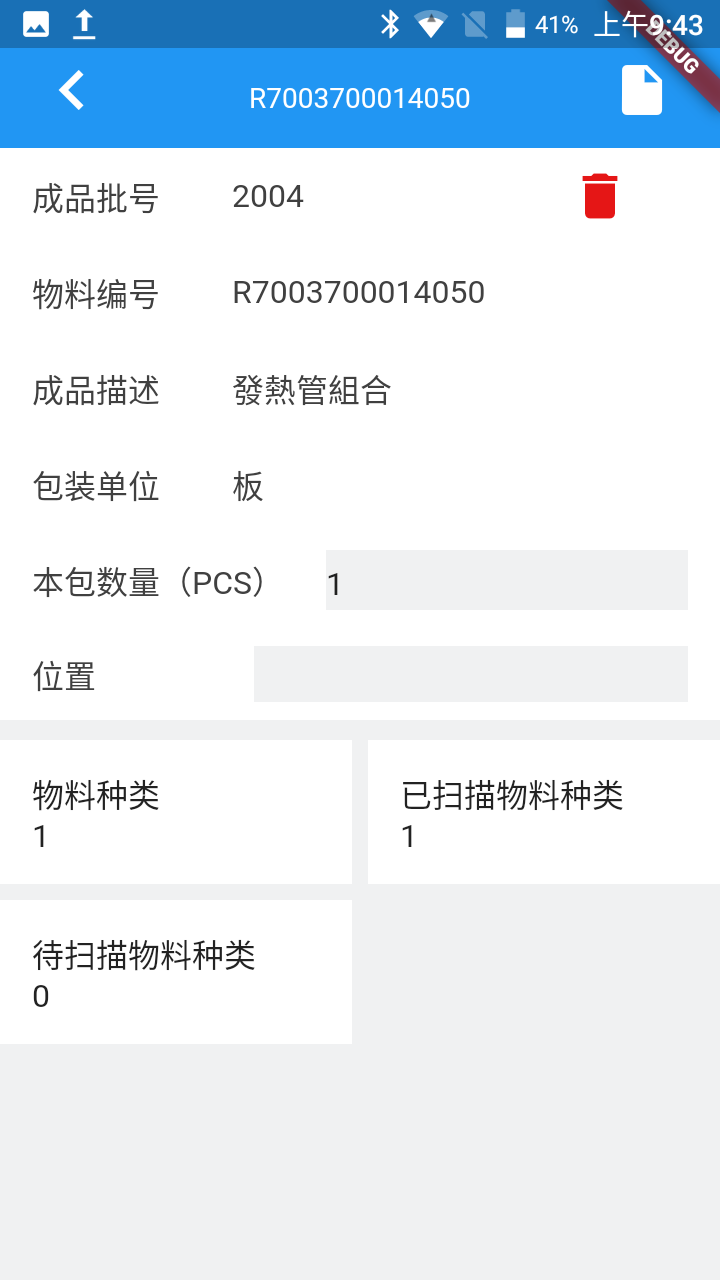 4.点击图标,删除物料,返回已扫描半成品入库单页面