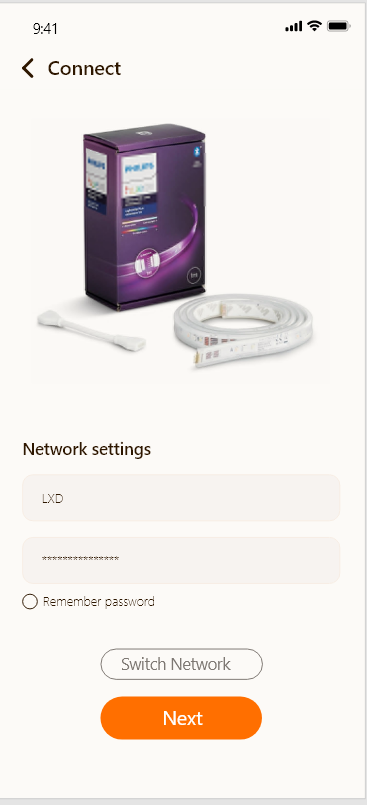 “Next”按钮(未填充wifi名称和未输入密码时不显示)